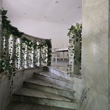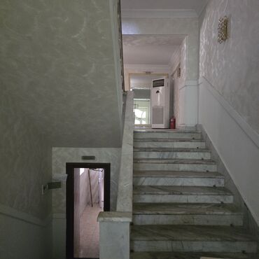 Obyekt – mərmər pilləkənləri və dekorativ fasadı olan geniş iki səviyyəli kommersiya sahəsi.