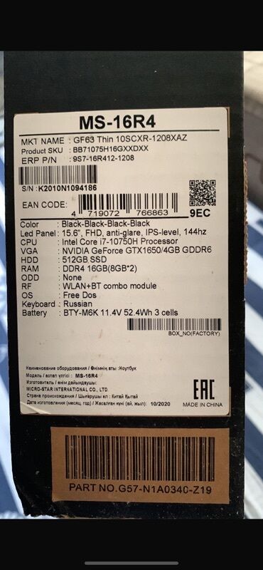 MSI GF63 Thin 10SCXR (MS-16R4) oyun noutbuku