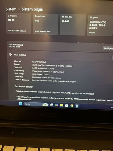 - Prosessor: Intel Core i5‑9300H, 2.40 GHz (4 nüvə/8 axın)