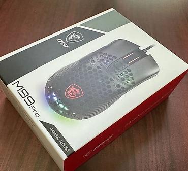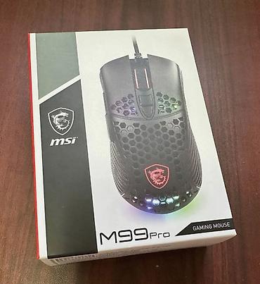 Qutu üzərində: MSI loqosu, “M99 Pro” modeli və “Gaming Mouse” qeyd olunub. Oyun və gündəlik istifadə üçün sürətli cavab, dəqiq nişan alma və estetik RGB işıqlandırma təqdim edir.