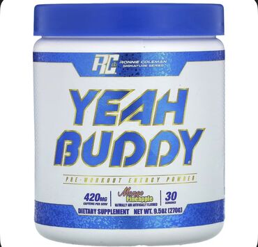 - Ronnie Coleman Signature Series YEAH BUDDY – Mango Pineapple dadı. Xalis çəkisi: 270 q (9.5 oz). Hər porsiyada 420 mg kofein. 30 porsiya. Təbii və süni dadlandırıcılarla.