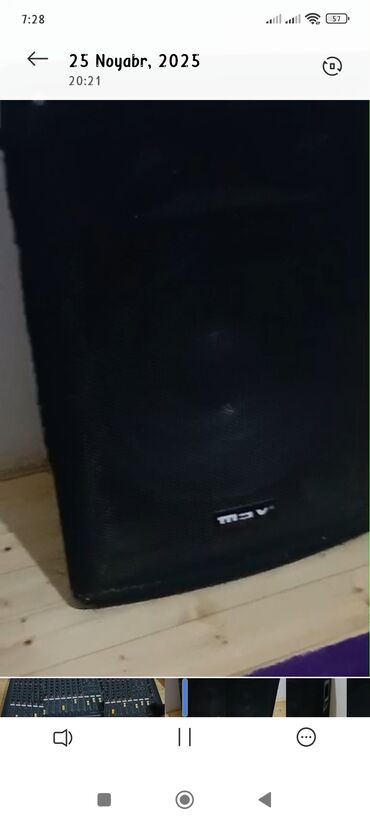 - Akustik kolonka: MSV markalı, ön hissə tam metal qəfəs ilə qorunmuş, bass sürücü və yüksək səs təzyiqi üçün geniş kabinet. Səhnə, tədbir və studiya məkanları üçün uyğun, passiv/aktiv göstəricisi fotolarda görünmür, lakin standart speakon/terminal girişlərinə uyğun quraşdırma imkanı (görünən lövhə yoxdur).