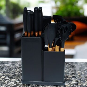 - Dəstə daxildir: müxtəlif ölçülü aşpaz bıçaqları, soyucu, həmçinin silikon başlı spatulalar, qaşıqlar, makaron qaşığı, çırpıcı, fırça, maqqaş/çəngəl tutacaq və s.