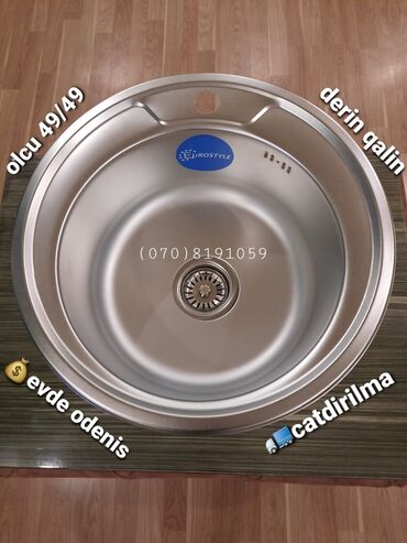 - Ölçü nümunəsi: paslanmayan polad dairəvi model – 49x49 sm (şəkildə qeyd olunub).