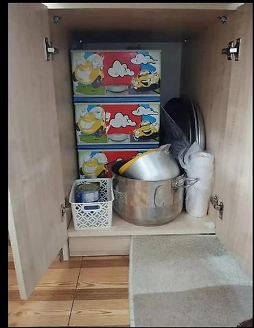 - Saxlama tutumu böyükdür: iri qablar, süfrə dəstləri, təmizlik vasitələri və digər mətbəx əşyaları səliqəli yerləşir