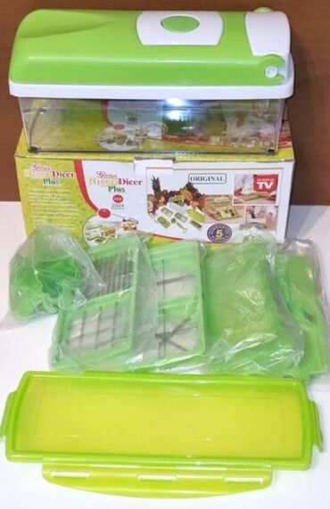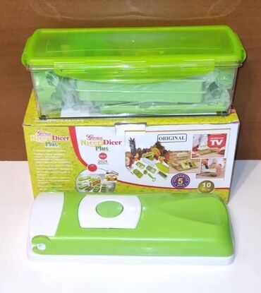 Alman markası tam Oriqinal"NicerDicer"çox keyfiyyətli təzədir qutuda.Bütün ərzaqları çox rahatlığla goğramaq olur.Doğramaq üçün müxtəlif doğrayıcılar hamısı qutuda.Alındığı qiymətdən çox ucuza satılır.