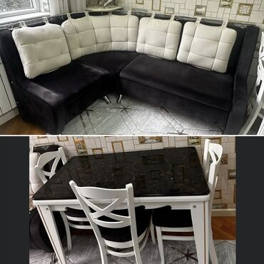 Metall karkaslı kafe/ev oturma dəsti - Komplekt: 1 ədəd dikdörtqan masa + 2 ədəd ikinərlik divan - Stil: loft/industrial - Rənglər: qara metal karkas, açıq ağac fakturalı masa üstü və qolluqlar, ş...