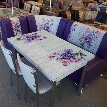 - Dizayn: Masaüstü və oturacaqlarda çiçək naxışları. Fərqli rəng kombinasiyaları mövcuddur (ağ-bənövşəyi, krem-qəhvəyi, ağ-bordo və s.).