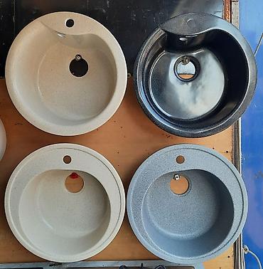 - Material: daş/kompozit (qranit effektli), həmçinin şüşə-parlaq səthli variant mövcuddur