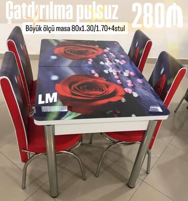 Mətbəx masa ( üstü şüşə✨Böyük ölçülü✨) + 4 stull dəst‼ Qiymət : 280₼ Təmiz Türk🇹🇷 istehsalı.Original Yeni və Anbardan satış. Çatdırılma şəhər daxili pulsuzdur 🎁