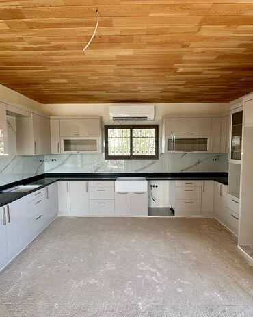 - Komplektasiya: Alt və üst dolablar, geniş saxlama bölmələri, dərin çekmecələr, vitrinalar, ankastre üçün yerlər (soba, qaz plitəsi, aspirator), qab-qacaq maşını üçün yer, iri ferma tipli evye variantı