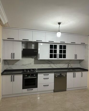 Mətbəx mebeli dizaynı və yığımı - Ölçüyə uyğun mətbəx mebelləri: düz xətt, L‑forma və U‑forma planlama - Üst və alt dolablar, bucaqlı şkaflar, quraşdırma üçün yer ayrılmış soba, aspirator, soyuduc...