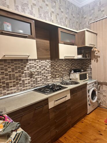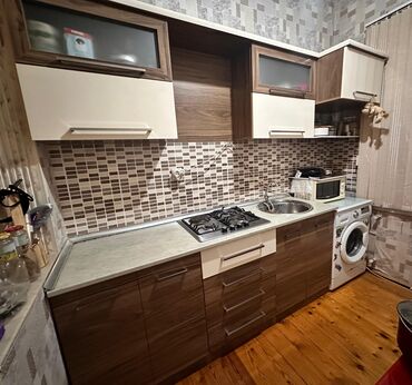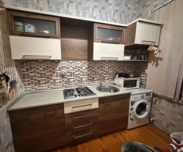 - Yerləşim: sağ tərəfində məişət texnikası üçün niş (şəkildə paltaryuyan və mikrodalğalı üçün yer).