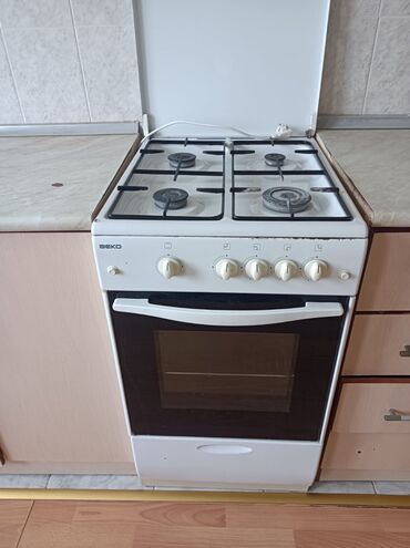 - Qaz sobası: BEKO markalı, 4 gözlü qazlı bişirici səth, alt hissədə elektrik işıqlı soba bölməsi; mexaniki idarəedici düymələr, metal qapaq.