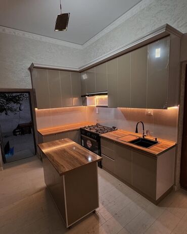 - Layihələndirmə: Məkanınıza uyğun L formalı, düz xətt, künc və ada (island) həlləri. Yuxarı-dolaplar tavana qədər dizayn edilə bilər.