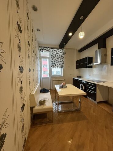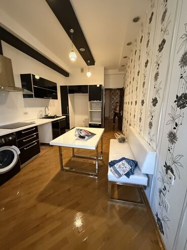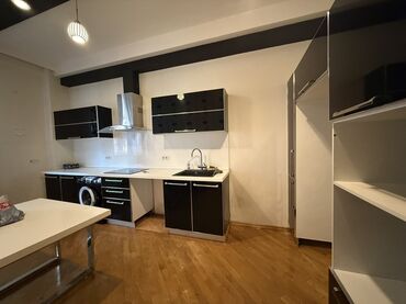 Mətbəx həm gündəlik istifadə, həm də qonaq qəbuluna uyğun funksional həllər təklif edir. Şkaflar bol saxlama sahəsi yaradır, masa və skamya rahat nahar küncü formalaşdırır. Texnika üçün bütün əsas bağlantılar nəzərdə tutulub.