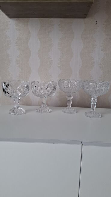 - Şüşə/kristal desert qabları (piyada): 4 ədəd, iki müxtəlif naxışlı model.