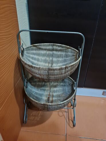 - İkimərtəbəli səbət stendi: metal karkaslı, toxunma səbətlər ilə; meyvə-tərəvəz və ya çörək-salfet kimi mətbəx əşyalarının saxlanması üçün rahat.