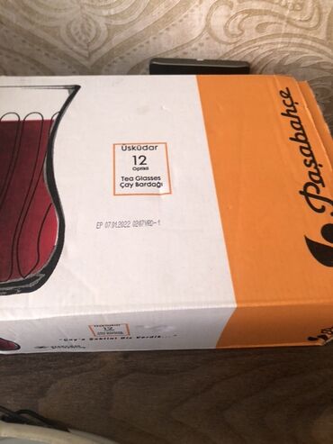- Paşabahçe “Üsküdar” çay stəkanları (qutu): 12 ədəd, optikli dizayn. Qutuda qeyd: Tea Glasses – Çay Bardağı.