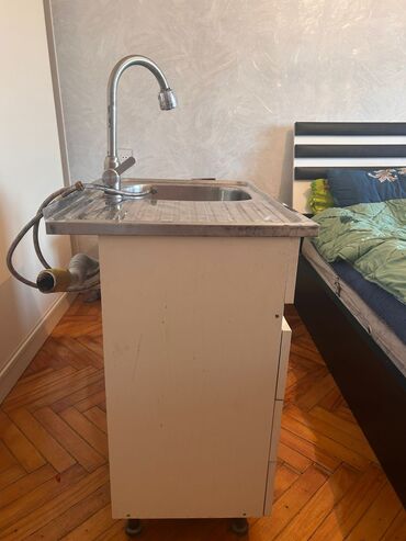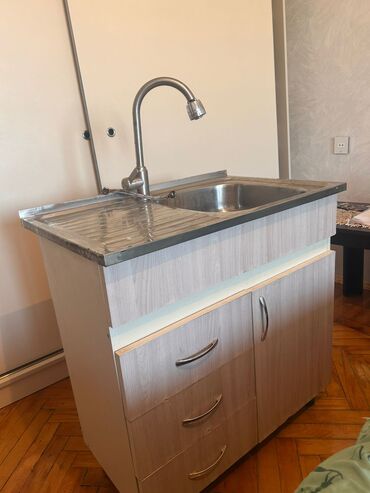 - Üst hissə: paslanmayan poladdan birgözlü lavabo və damcı saxlayan iş səthi