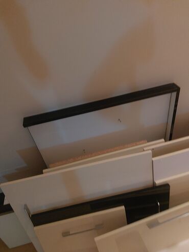 Mətbəx dolabı dəsti - Üst hissə: 4 ədəd şüşəli qapılı asma şkaf. Alüminium/profil çərçivəli şüşə qapılar, tutacaqlar mövcuddur. - Alt hissə: müxtəlif ölçülü 4 bölməli dolab sistemi. İki qapılı böl...