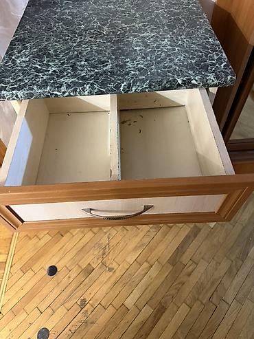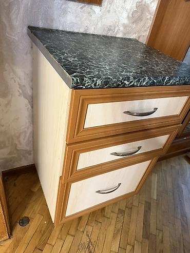 Mətbəx üçün 3 çekmecəli dolab - Üstlük: tünd-yaşıl mərmər naxışlı