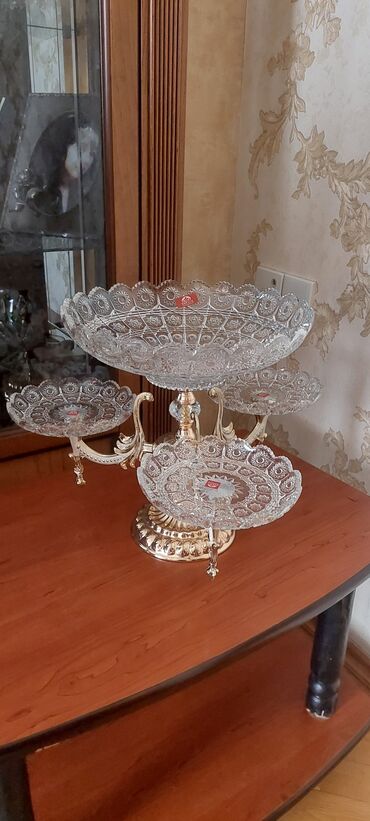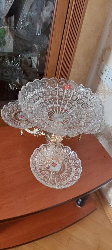3 ədəd Böyuk meyvə xrustal qablari dörd bucaqli-i50 azn biri-50 biri ayaqli 30azn