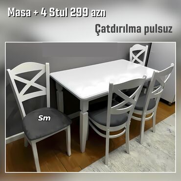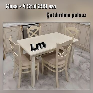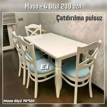 Metbex üçün masa + 4 stul desti Qiymət : 299 azn Masa / 70 x 1.20 Rəng seçimi azad Çatdırılma Bakı şəhər daxili pulsuz Elani Screen Edib Watcapa Gonderin