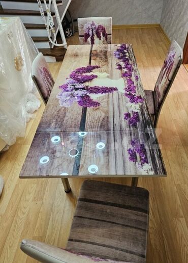 Mətbəx üçün, İşlənmiş, Açılmayan, Dördbucaq masa, 4 stul