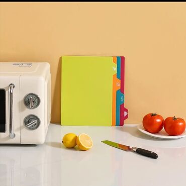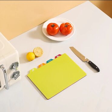 - Hər lövhə müxtəlif rəngdədir və üst hissəsində kateqoriya nişanı var: tərəvəz, toyuq, balıq, qırmızı ət. Bu, çarpaz çirklənmənin qarşısını almağa kömək edir və hansı məhsul üçün hansı lövhənin ayrıldığını tez tapmağa imkan verir.