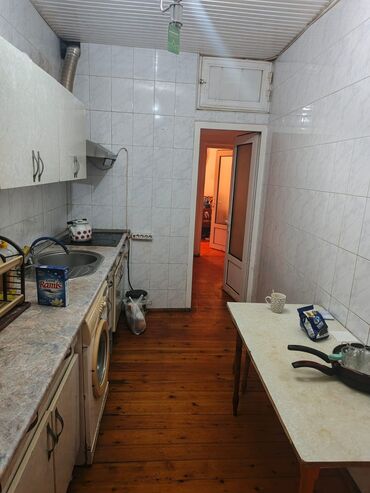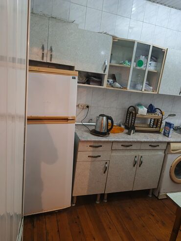 - Mətbəx: divar və döşəmə tam kafel/taxta örtüklü, asma şkaflar, iş səthi, aspirator, paltaryuyan üçün yer və qoşulma, soyuducu, elektrik çaydanı, qab-qacaq üçün rəf, ayrıca masa.