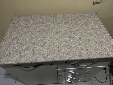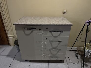 - Üst panel: qalın, mərmərə bənzər naxışlı laminat masaüstü; hamar və nəmə davamlı səth, hazırlıq və gündəlik işlər üçün geniş iş sahəsi.