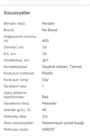 Portativ blender, Yeni, Rayonlara çatdırılma, Ünvandan götürmə, Pulsuz çatdırılma