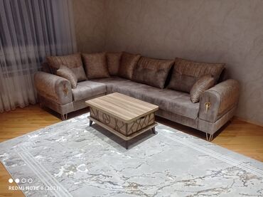 - L‑şəkilli künc konstruksiya: qonaq otağına sığan, oturma sayını artıran ergonomik forma