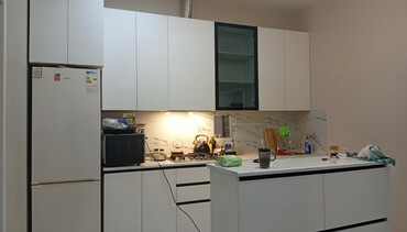 Quraşdırmaya hazır modul quruluş; neytral rəng palitrası ilə müxtəlif interyerlərlə uyğunlaşır. LED işıqlandırma və mərmər effektli arxa panel yemək bişirmə zonasını rahat və estetik edir.