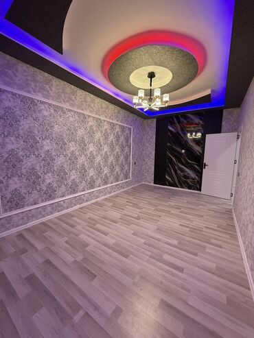 - Otaqlar: bir neçə geniş otaq, hər birində fərqli dizaynlı asma tavan, spot və lustra kombinasiyası, perimetr boyu LED xətt işıqları.