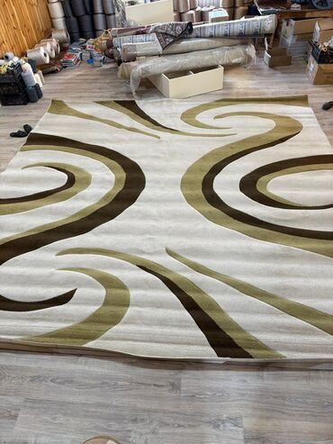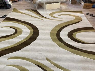 Müasir dizaynlı xalça - Forma: düzbucaqlı - Ölçü təxmini: 2 x 3 m (şəkillərə əsasən iri ölçü) - Rəng palitrası: bej, krem və qəhvəyi tonlar - Naxış: qalın qəhvəyi xətlər üzərində abstrakt, spiral ...