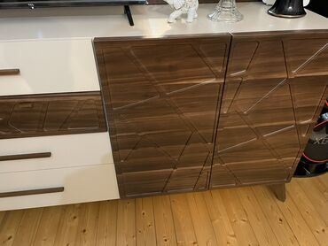 TV altlığı / komod az işlənib .təzə kimidi - Dizayn: minimal və müasir üslub, ağac teksturalı ön panellər və tünd rəngli üst səth - Quruluş: iki geniş bölməsi olan çekmecəli sistem (yan‑yanadır), r...