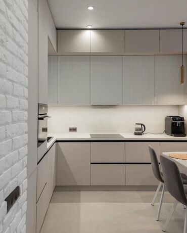 - Minimalist dizayn: düz xətli fasadlar, gizli tutacaqsız açılış, mat səthlər.