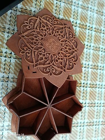 - Daxili quruluş: 8 ayrı bölməli içlik – quru yemiş, konfet, çay dəmlikləri, ədviyyat və xırda aksessuarların səliqəli saxlanması üçün