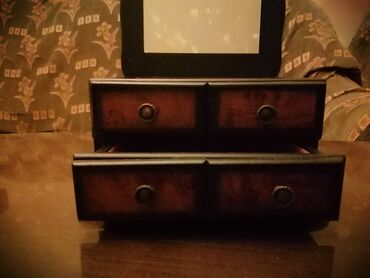 Bujiterya saxlamaq üçün mücrü. İki daxalı var.Üstündə qapağı var o gözüdə istifadə etmək olur. Material taxtadır. Hündürlük 15cm, en 12cm. Qiymət 10azn. Ünvan Bakıxanov/Qaraçuxur. Elanla bağlı əla...