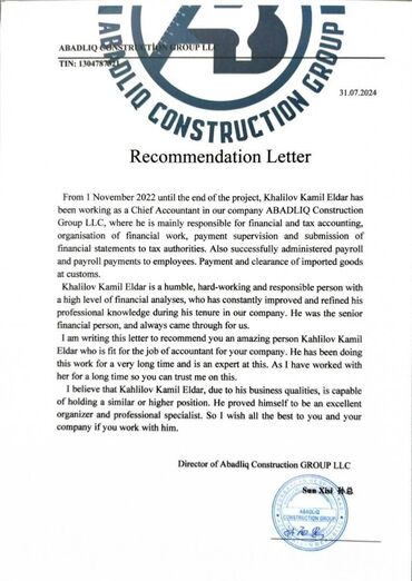 Xəlilov Kamil — Peşəkar Baş Mühasib (Professional Chief Accountant)