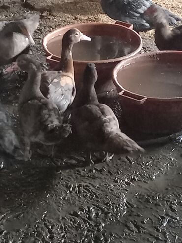 Muscovy ördəkləri (indo-ördəklər) - Rənglər: qara, qəhvəyi və ağ qarışıq ləkəli lələklər, bəzilərinin qanadlarında yaşıl-mavi parıltı. - Yaş qrupu: gənc fərdlərdən ibarət sürü. - Cins nisbəti: sür...