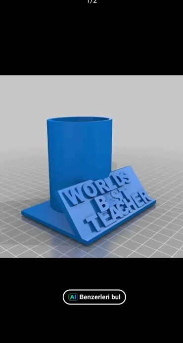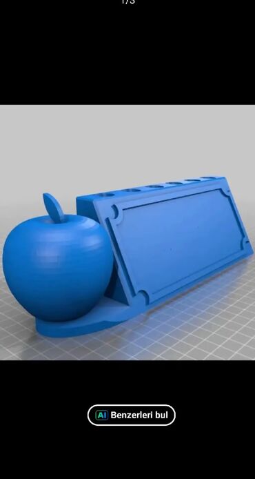 - 3D çap dizaynı: alma formasında qaləm tutacağı və “Happy Teacher’s Day” yazılı platforma. İki ədəd qələmi eyni anda saxlaya bilən yuvalar var.