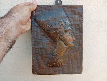 Dekorativ relyef tablo – metal üzərində əl işi. - Material: tünd tonlu metal (xalq sənəti üslubunda döymə/çəkicləmə texnikası). - Kompozisiya: klassik şərq motivli qadın portreti, detalcı işlənmiş...