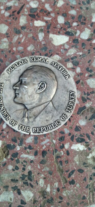 - Ön tərəf: “MUSTAFA KEMAL ATATÜRK – THE FOUNDER OF THE REPUBLIC OF TURKEY” yazılı relyef portret.