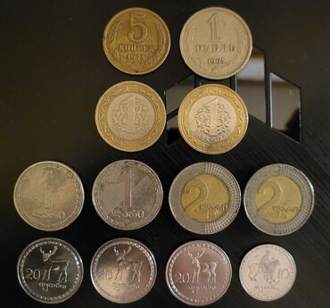 - SSRİ dövrünə aid sikkələr: 5 kopeek (1974), 1 rubl (1964) – hər ikisinin arxa üzündə SSRİ gerbi.