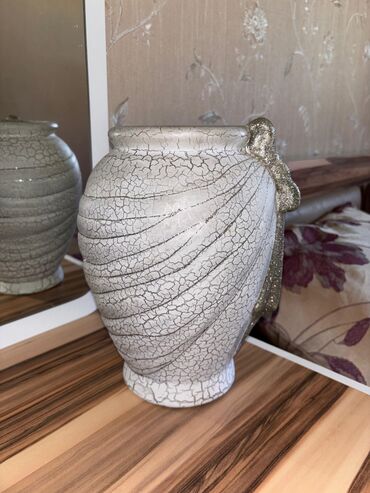 Böyük dekorativ vaza – tekstural beton görünüşlü - Material: beton/daş kompozit (ağ-qara tekstural boya ilə). - Forma: iri, yumurta/konus silueti; yuxarı hissədə dairəvi açılış. - Rəng və faktura:...Razılaşma yolu ilə