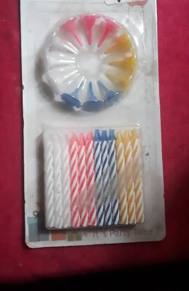 - Ad günü tortu üçün spiral naxışlı rəngli kiçik şamlar dəsti (ağ, çəhrayı, mavi, sarı rənglər) və tort üzərində bərkitmək üçün plastik tutacaqlar.