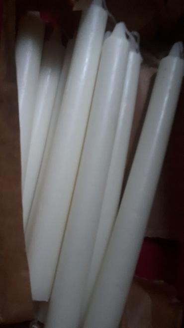 - Uzun, klassik ağ şamlar (stolüstü, elektrik kəsintisi və dekor üçün uyğundur).